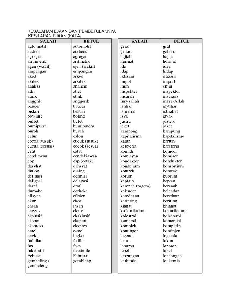 Kesalahan Ejaan Dan Pembetulannya Pdf